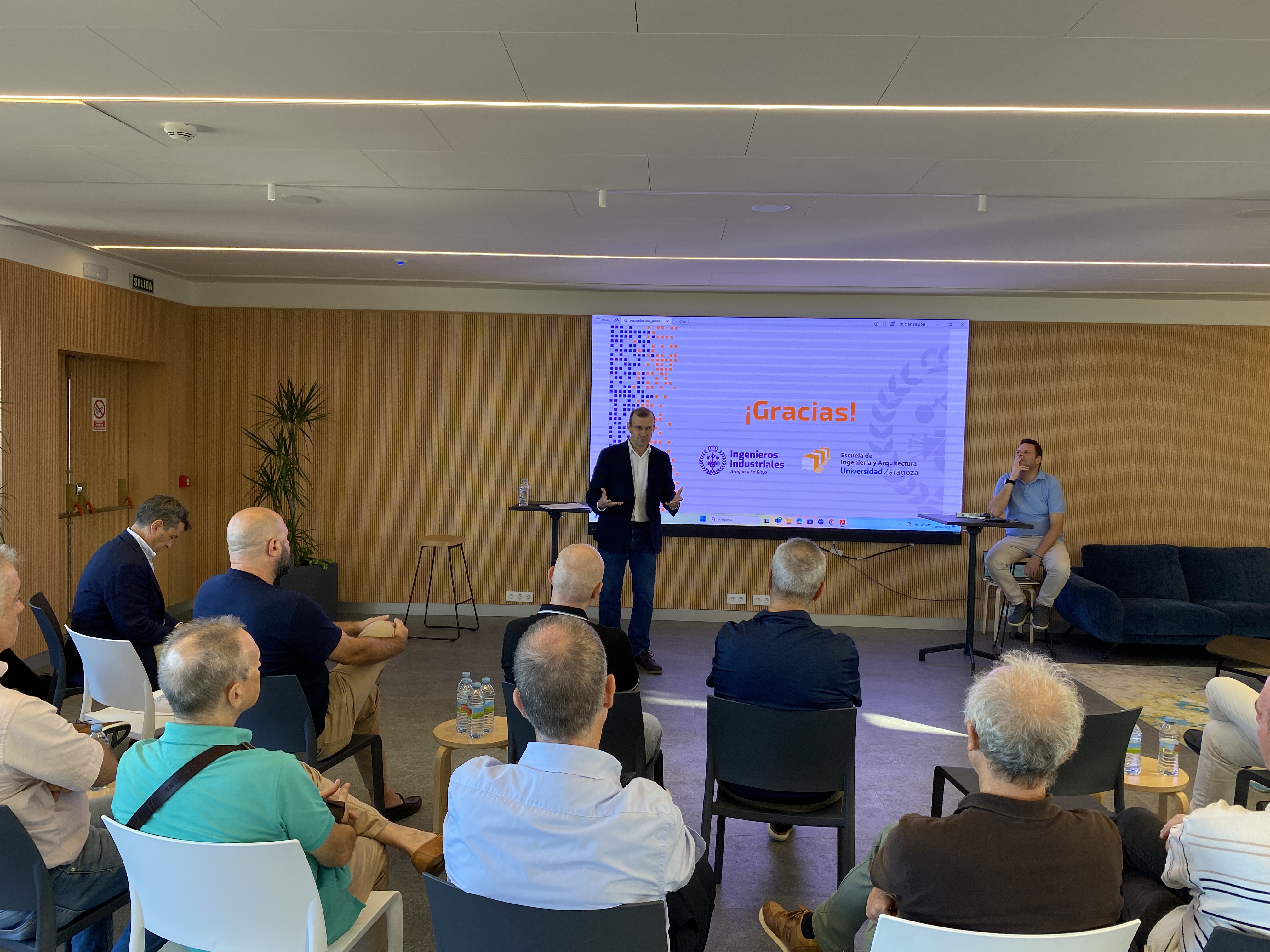 El pasado jueves tuvo lugar el primer Café con Ingeniería, un espacio de encuentro impulsado por el Colegio Oficial de Ingenieros Industriales de Aragón y La Rioja (COIIAR) y la Escuela de Ingeniería y Arquitectura (EINA), que reunió a alumnos, profesores y profesionales del sector.